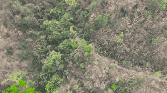 In the tropical rainforest reserve where Asian elephants live, the trees are dense, making it difficult for elephants' ground activities to be captured by high-altitude visible light images. Using the Zenmuse H30T infrared ultra-clear mode, you can quickly spot Asian elephants through the gaps in the tree canopy.