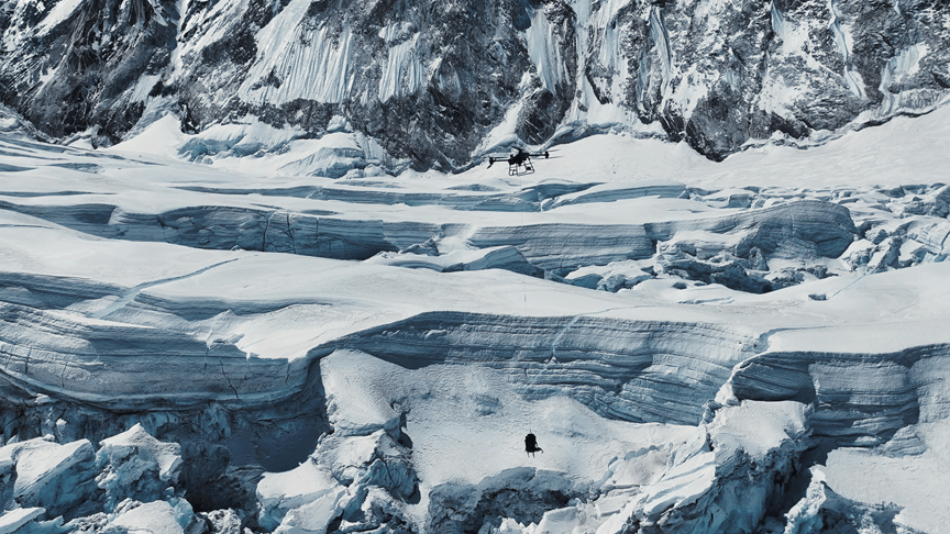 It is reported that the best window period for climbing Mount Everest from the Nepalese side is from the end of April to mid-May each year. In order to complete the on-site transportation measurement of FC30 within the window period and accumulate experience for normalized transportation, the DJI transportation team decided to focus on the transportation from the South Slope Base Camp to the C1 Camp this year, because this route has the highest icefall on earth-the Khumbu Icefall, which is the first major obstacle to climbing Mount Everest on the South Slope. It is also the most complex and dangerous section of the South Slope mountaineering geographical environment, also known as the "terrifying icefall".