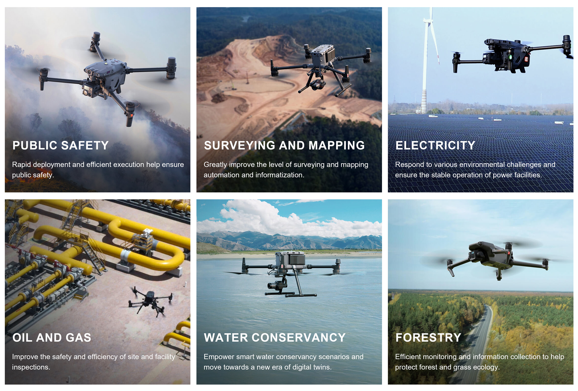 Based on DJI industry application series products and relying on the East China UAV base, we build an ecosystem and six centers to provide customers with multi-dimensional and all-round solutions from top-level design to landing services. Help the fields of public security fire protection, power inspection, surveying and mapping infrastructure, urban management, etc., liberate productivity, reshape productivity, and build a link between technology and services.